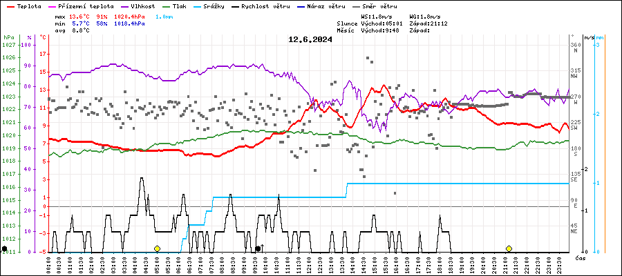 | Minimální teplota: | 5.7°C | v 07:40 |