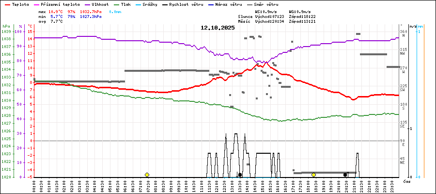 | Maximální teplota: | 10.9°C | v 15:15 |