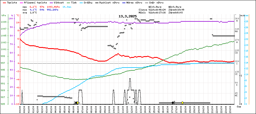 | Maximální teplota: | 6.2°C | v 00:00 |