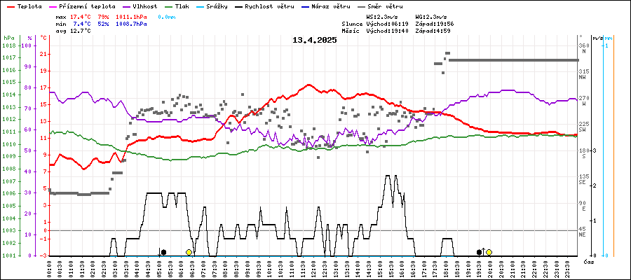 | Maximální teplota: | 17.4°C | v 11:45 |