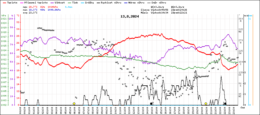 | Minimální teplota: | 18.3°C | v 22:55 |
