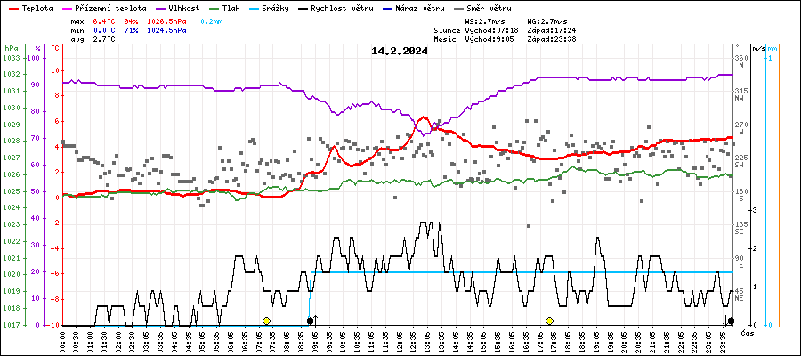| Maximální teplota: | 6.4°C | v 12:55 |