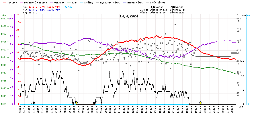 | Maximální teplota: | 19.5°C | v 15:05 |