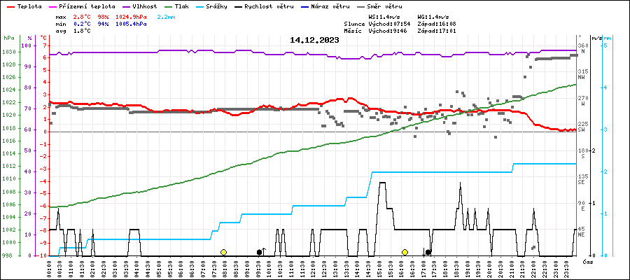 | Maximální teplota: | 2.8°C | v 13:35 |