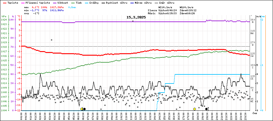 | Minimální teplota: | -1.7°C | v 08:00 |