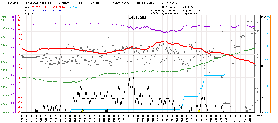 | Maximální teplota: | 7.7°C | v 14:30 |