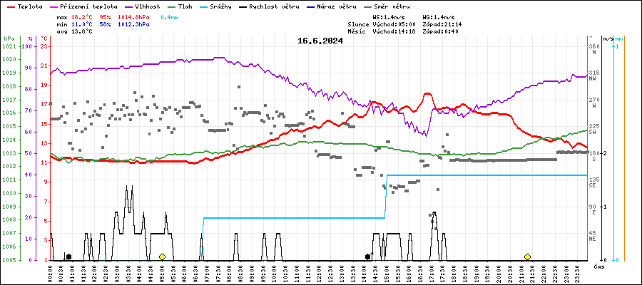 | Maximální teplota: | 18.2°C | v 16:45 |
