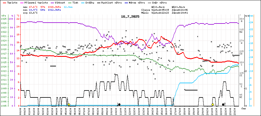 | Maximální teplota: | 17.6°C | v 15:25 |