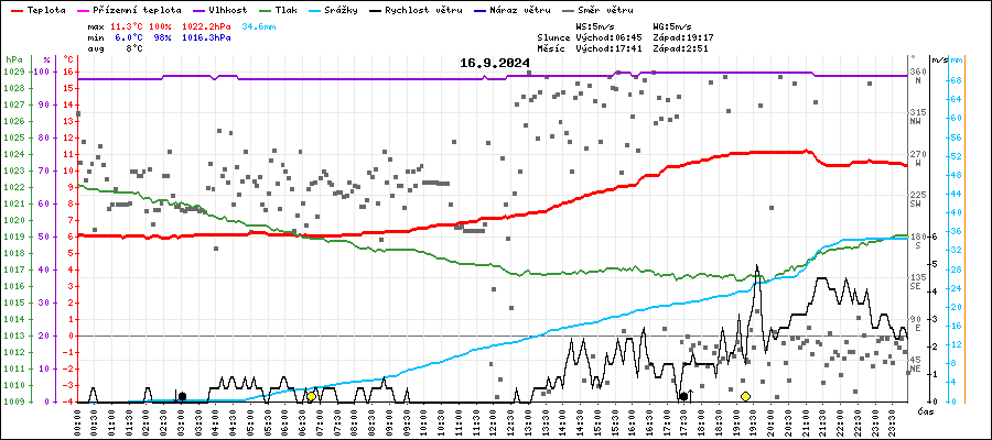 | Minimální teplota: | 6.0°C | v 01:20 |