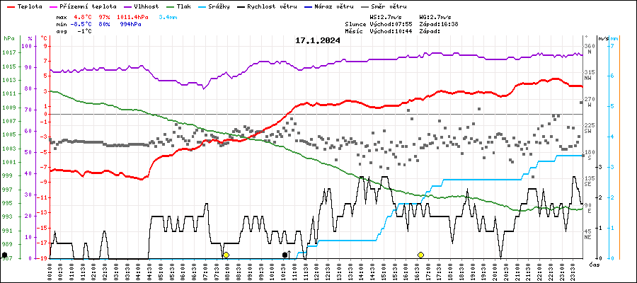 | Maximální teplota: | 4.8°C | v 22:35 |