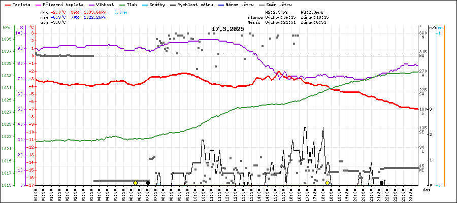 | Minimální teplota: | -6.9°C | v 23:45 |