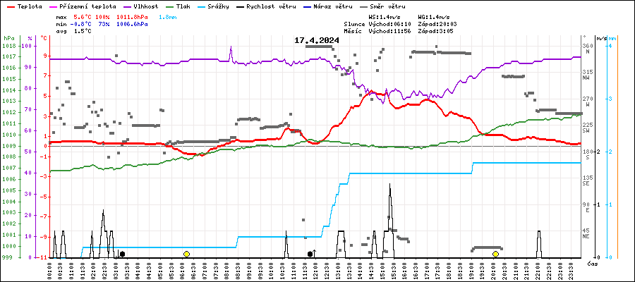 | Maximální teplota: | 5.6°C | v 14:30 |