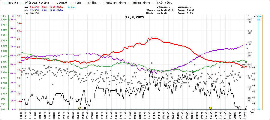 | Maximální teplota: | 20.4°C | v 13:50 |