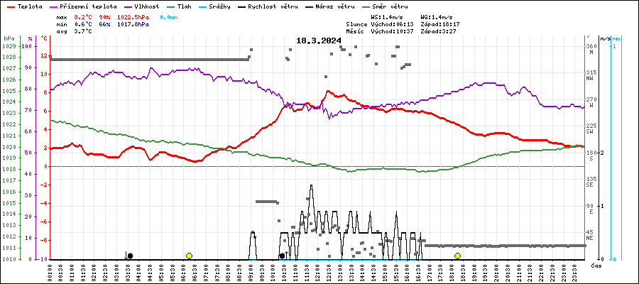 | Maximální teplota: | 8.2°C | v 12:25 |