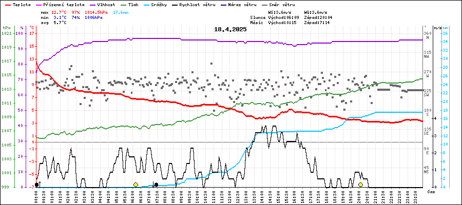 | Maximální teplota: | 12.7°C | v 00:00 |