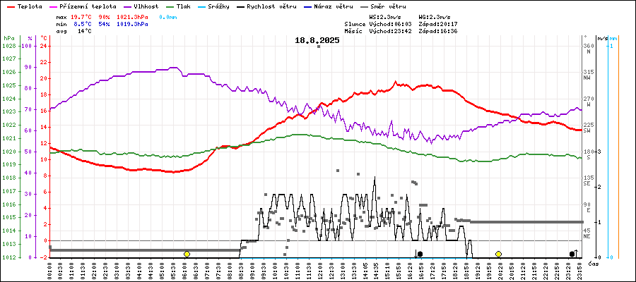 | Maximální teplota: | 19.7°C | v 15:40 |