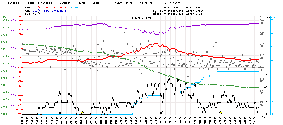 | Maximální teplota: | 3.1°C | v 13:25 |