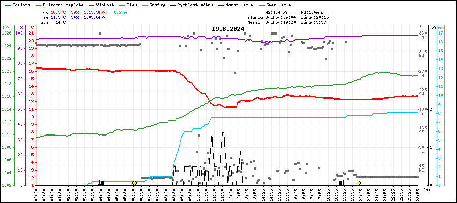 | Maximální teplota: | 16.5°C | v 00:00 |