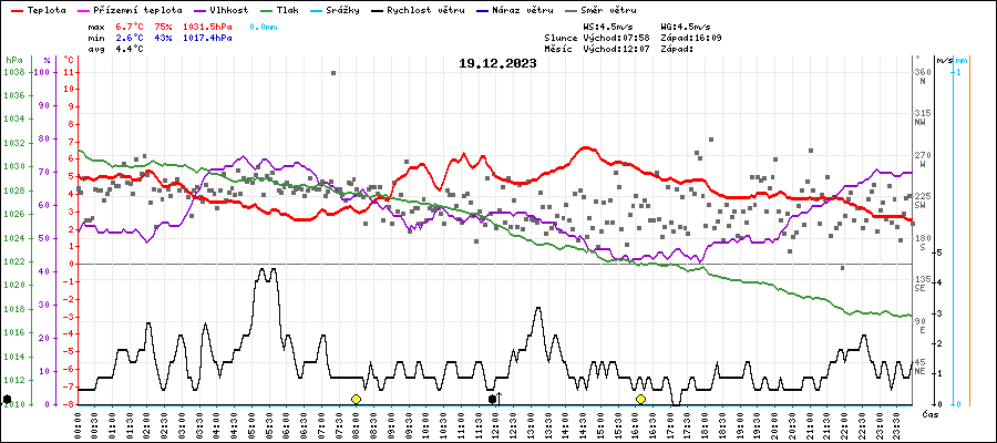 | Maximální teplota: | 6.7°C | v 14:30 |