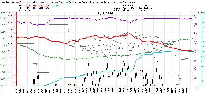 | Minimální teplota: | 6.0°C | v 23:45 |