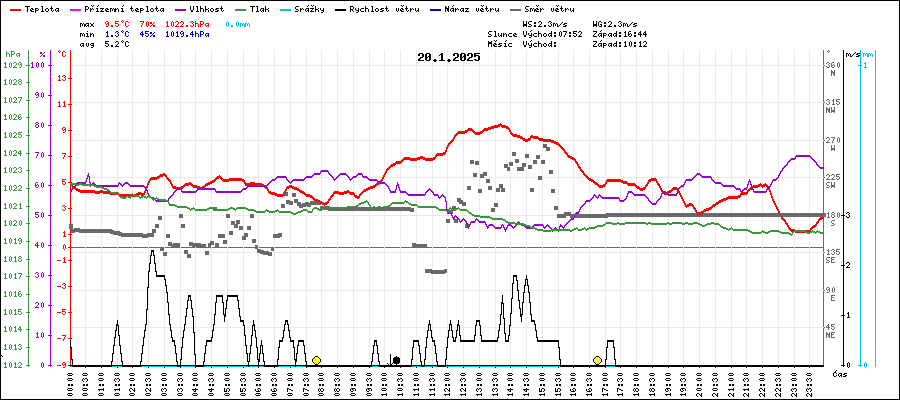 | Maximální teplota: | 9.5°C | v 13:40 |