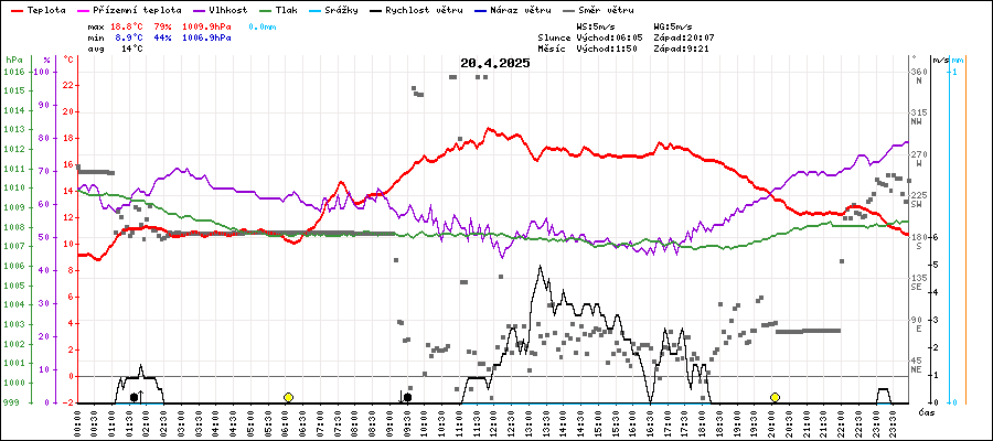 | Maximální teplota: | 18.8°C | v 11:50 |