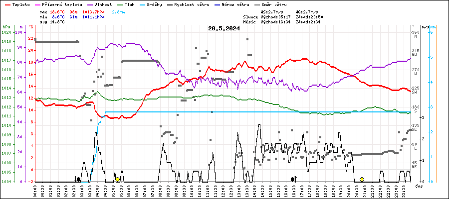 | Maximální teplota: | 18.6°C | v 16:15 |