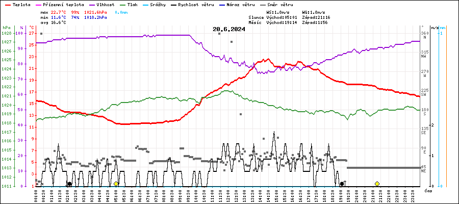 | Minimální teplota: | 11.6°C | v 05:20 |