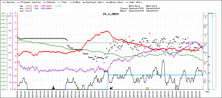 | Průměrná teplota: | -1.8°C | (tepl. v 7 + 14 + 2 x 21 h) |