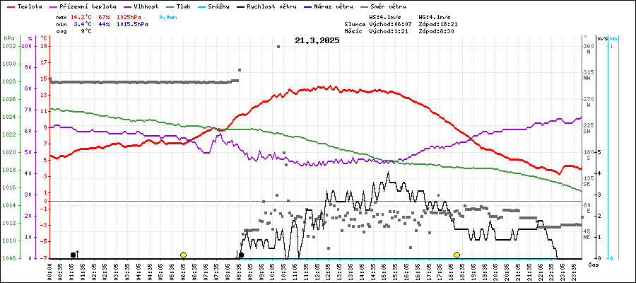 | Maximální teplota: | 14.2°C | v 12:40 |