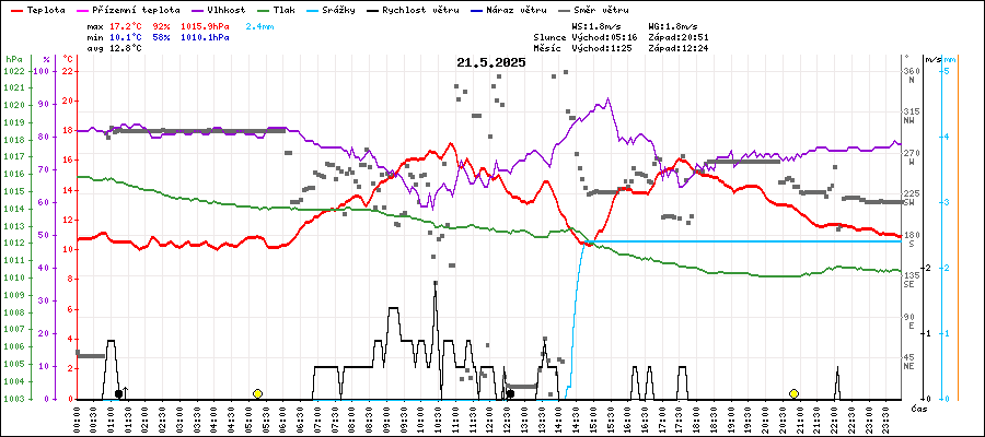| Maximální teplota: | 17.2°C | v 10:50 |