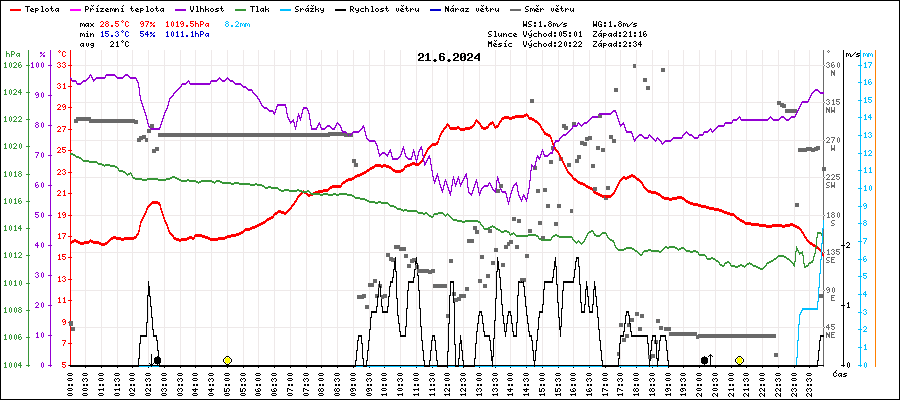 | Minimální teplota: | 15.3°C | v 23:55 |