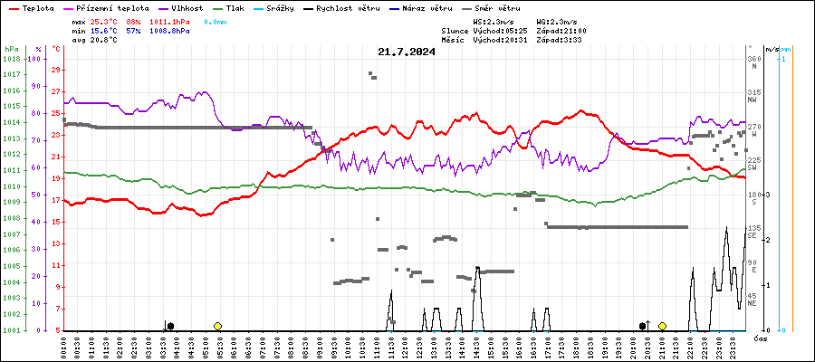 | Maximální teplota: | 25.3°C | v 18:10 |