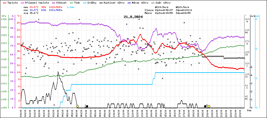 | Maximální teplota: | 20.8°C | v 12:50 |