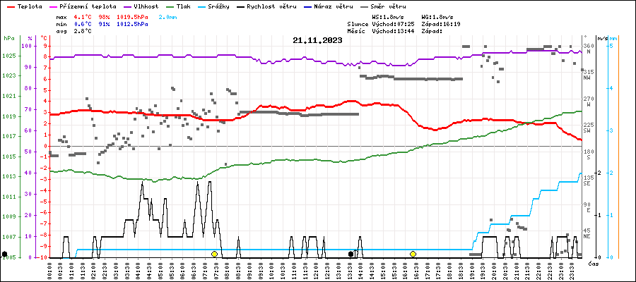 | Maximální teplota: | 4.1°C | v 13:25 |