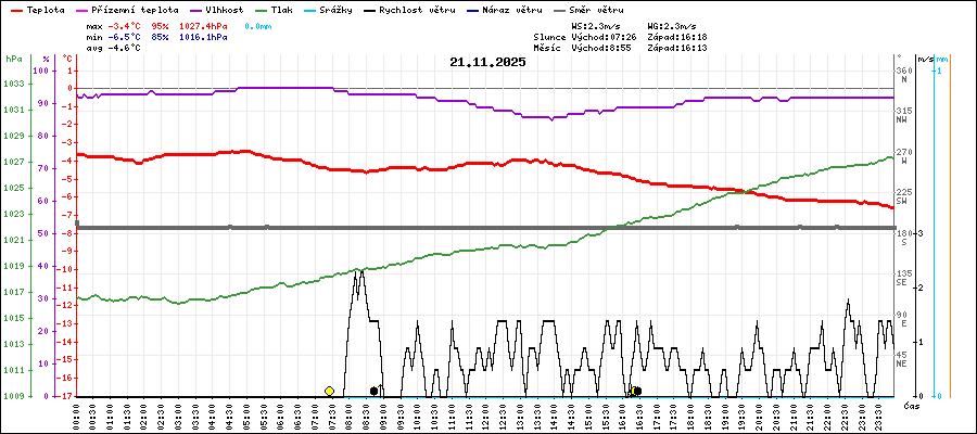 | Minimální teplota: | -6.5°C | v 23:50 |
