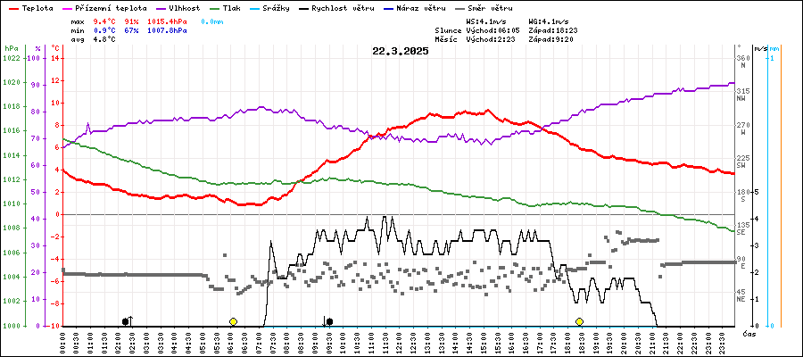 | Maximální teplota: | 9.4°C | v 15:10 |