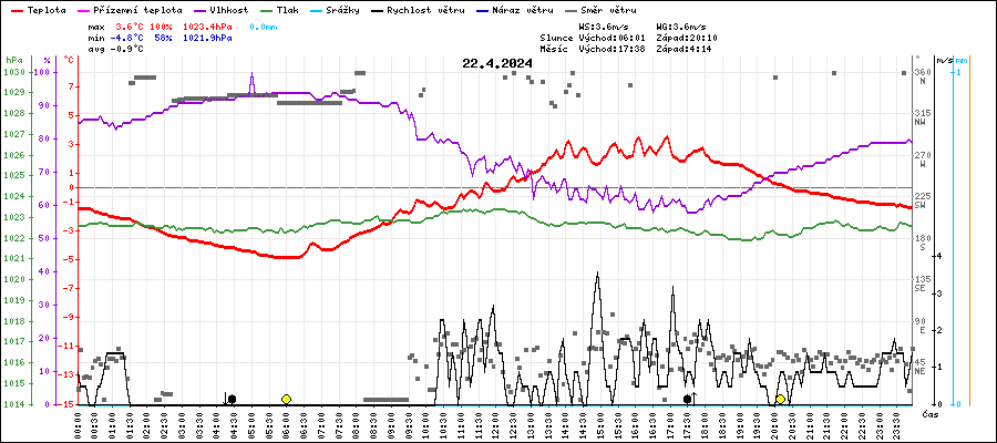 | Maximální teplota: | 3.6°C | v 16:55 |