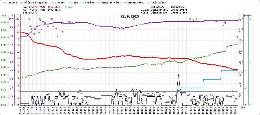 | Maximální teplota: | 17.9°C | v 00:00 |