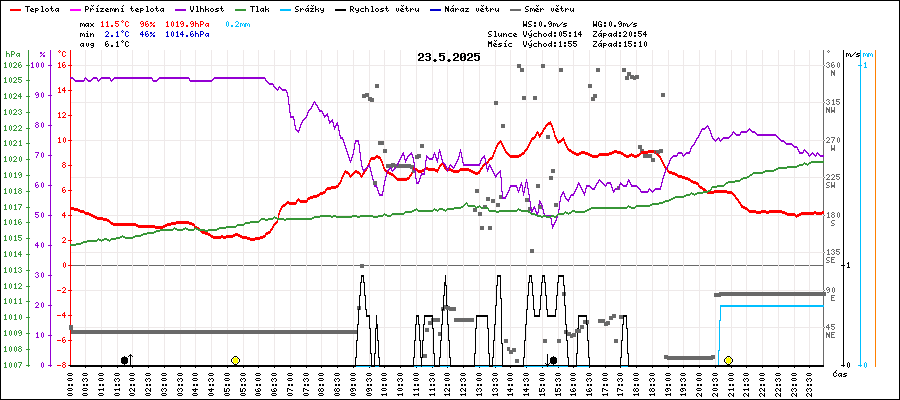 | Maximální teplota: | 11.5°C | v 15:15 |