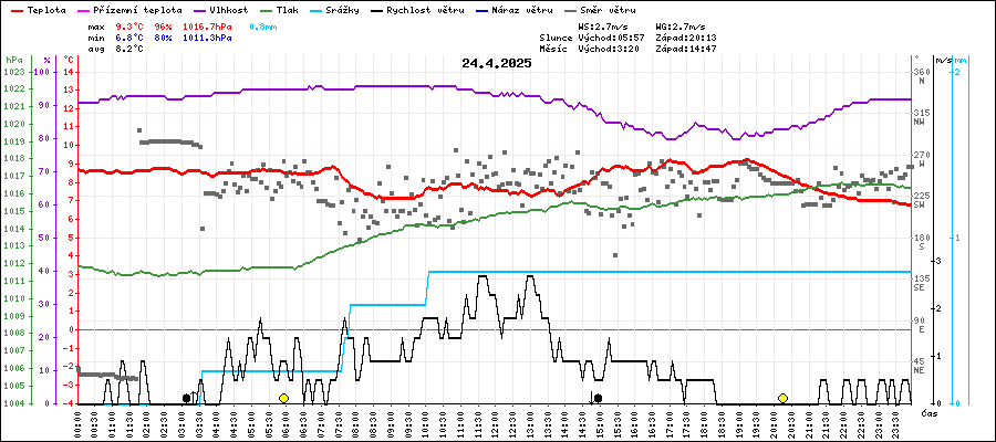 | Minimální teplota: | 6.8°C | v 23:50 |