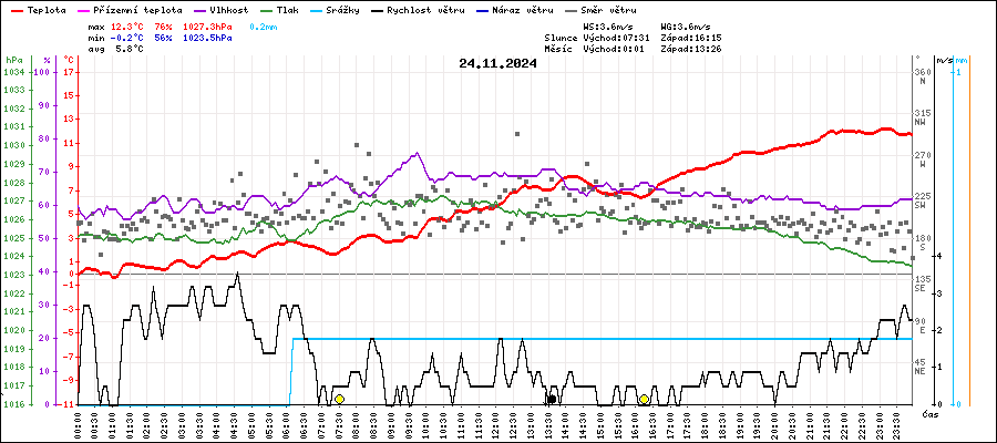 | Minimální teplota: | -0.2°C | v 01:00 |