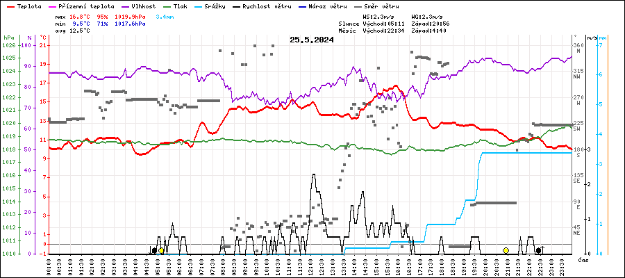 | Maximální teplota: | 16.8°C | v 15:50 |