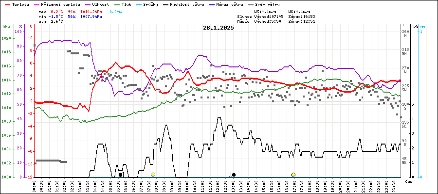 | Maximální teplota: | 6.2°C | v 05:20 |