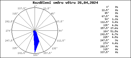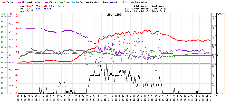 | Maximální teplota: | 11.6°C | v 16:25 |