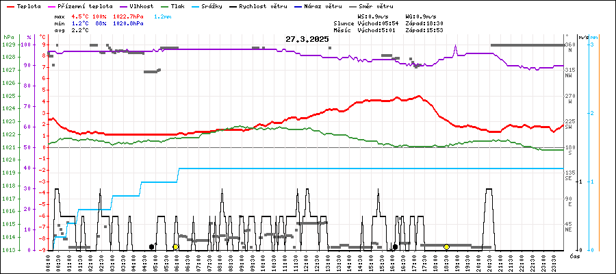 | Minimální teplota: | 1.2°C | v 01:30 |
