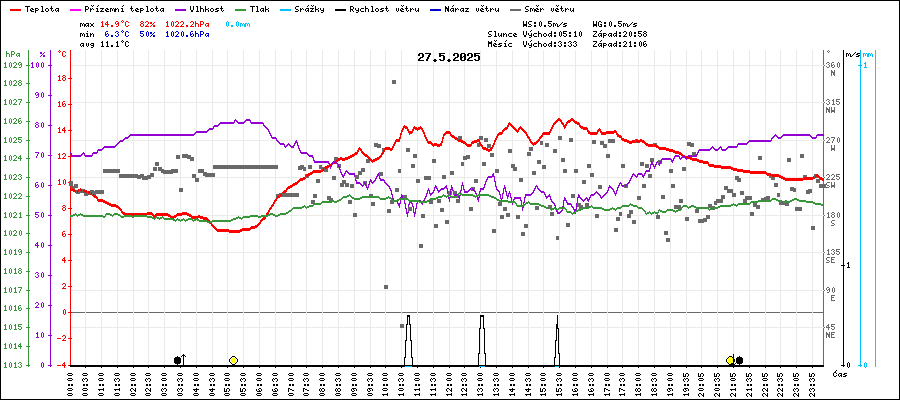 | Minimální teplota: | 6.3°C | v 05:05 |