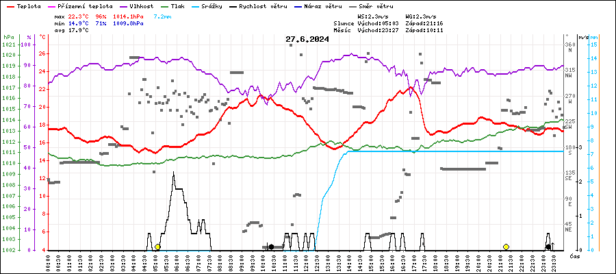 | Maximální teplota: | 22.3°C | v 16:50 |