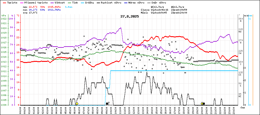 | Maximální teplota: | 22.5°C | v 16:25 |