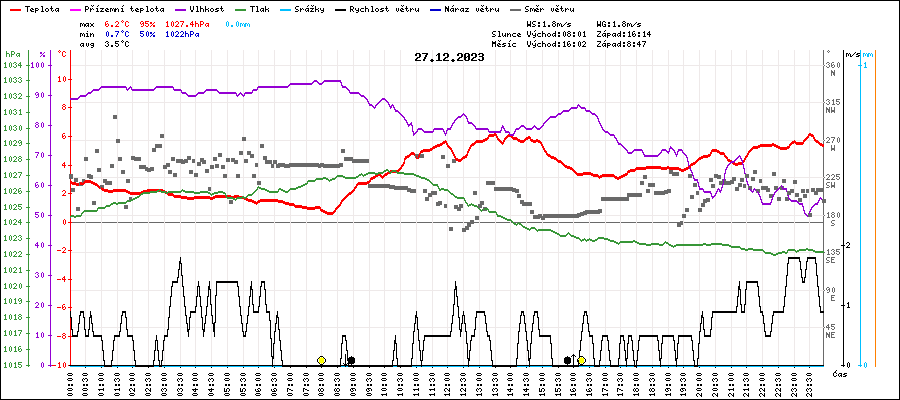| Maximální teplota: | 6.2°C | v 13:30 |